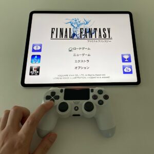▲コントローラーを接続したら、「iPad」でピクセルリマスター版の「FINAL FANTASY (1作目)」を起動します。
