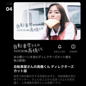 Netflixのドラマ「自転車屋さんの高橋くん ディレクターズカット版」は、2022年11月4日より配信開始されます。
