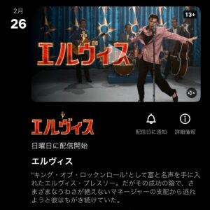 Netflix(ネトフリ)の映画「エルヴィス」は、2023年2月26日より配信開始されます。