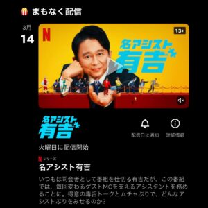 視聴はこちら: Netflixで「名アシスト有吉」を観ましたか?