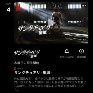 ドラマ「サンクチュアリ -聖域- (Sanctuary)」は、大相撲を題材にしたオリジナル脚本でドラマ化され、NetflixオリジナルシリーズとしてNetflixで2023年5月4日より配信開始されました。