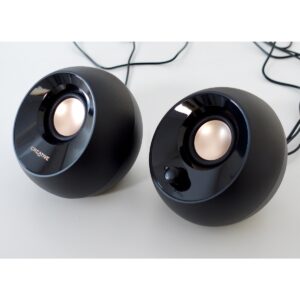 このグレードのスピーカーでは仕方がないのですが、低音が欲しい場合はサブウーファー搭載モデルの「Creative Pebble Plus」もあります。