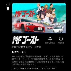 ※Netflixの「MFゴースト」の新着エピソードの更新日(配信時間)日曜日となっています。