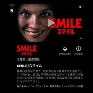 Netflix(ネトフリ)の映画「SMILE/スマイル」は、2023年10月5日より配信開始されます。