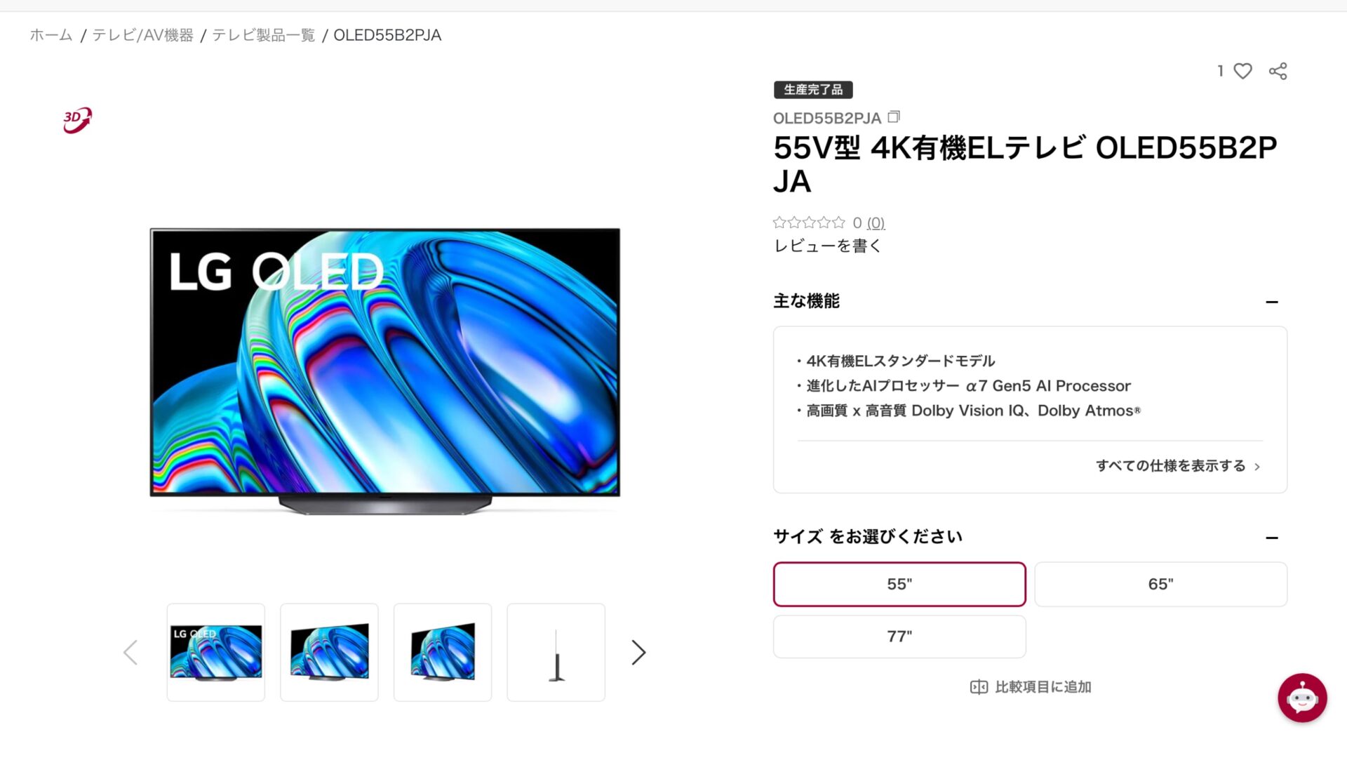 2台目は、「LG B2」で、2022年発売の4K有機ELテレビです。