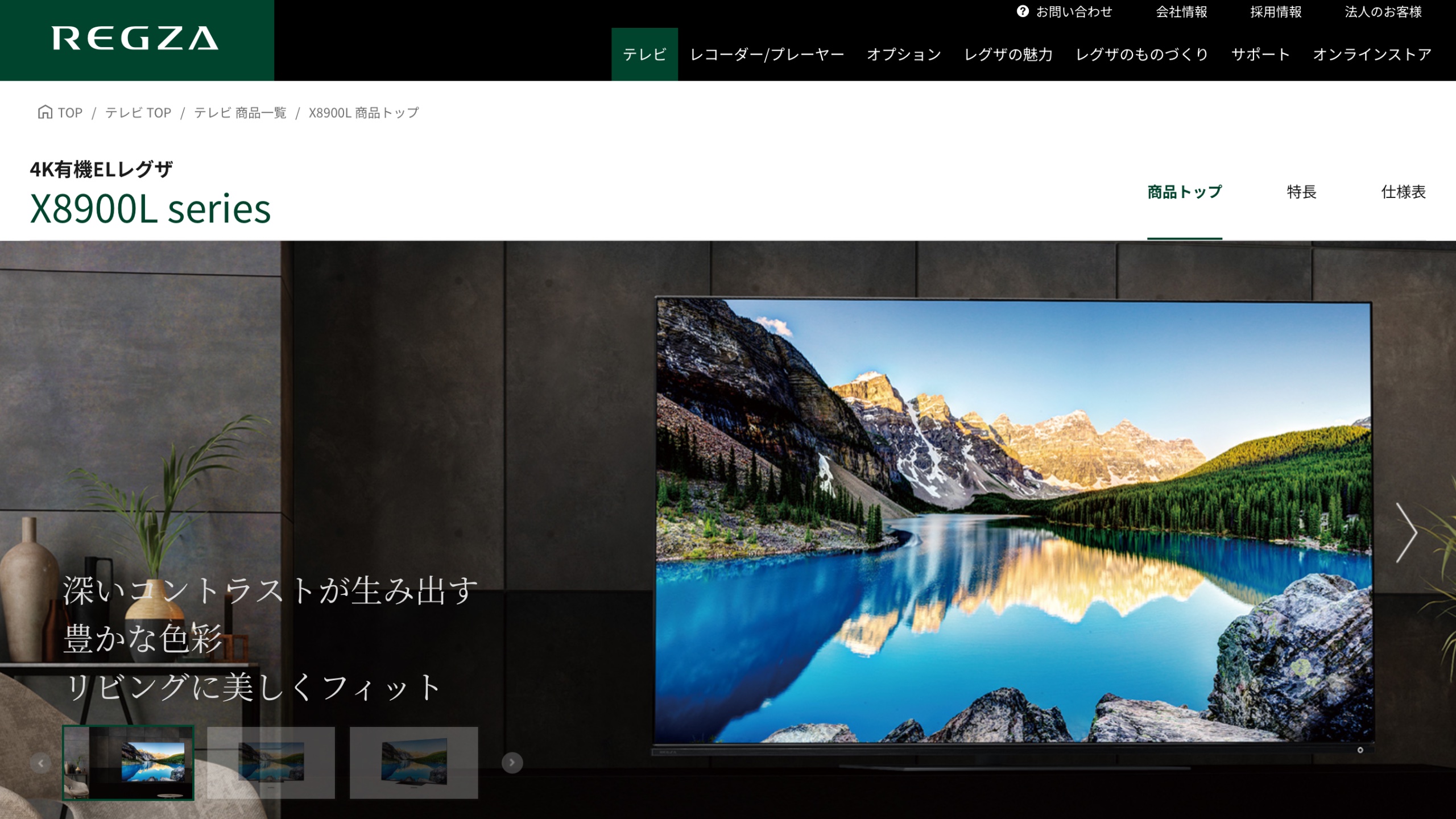3台目は、「レグザ X8900L」で、2022年発売の4K有機ELテレビです。