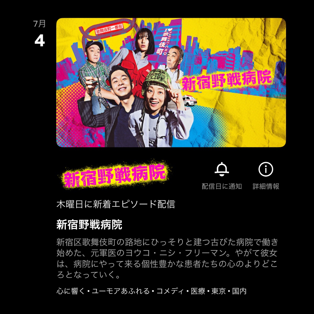 ※Netflixの「マウンテンドクター」の新着エピソードの配信日(更新日)はテレビ放送終了後となっています(※月曜日の夜11時頃)。