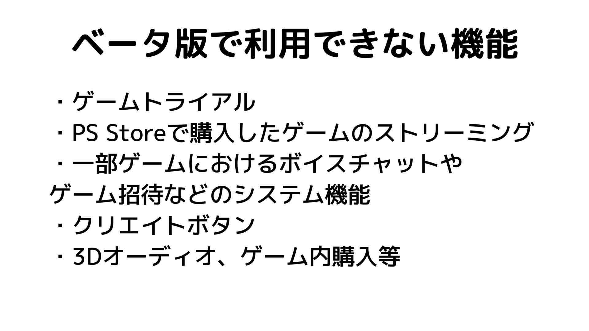 まだベータ版なので、遊べるのはカタログ内のPS5用ゲームに限られるようです。